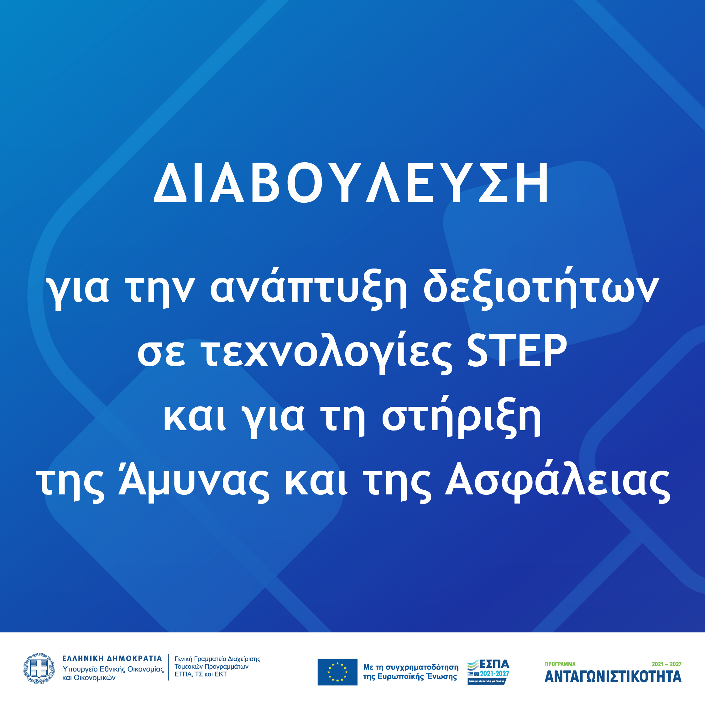 Το Πρόγραμμα «Ανταγωνιστικότητα» του ΕΣΠΑ 2021 2027 αναθεωρείται προκειμένου να ενσωματώσει τις νέες πολιτικές της Ευρωπαϊκής Ένωσης για την ανάπτυξη Στρατηγικών Τεχνολογιών STEP και τεχνολογιών που σχετίζονται με την Άμυνα και την Ασφάλεια.